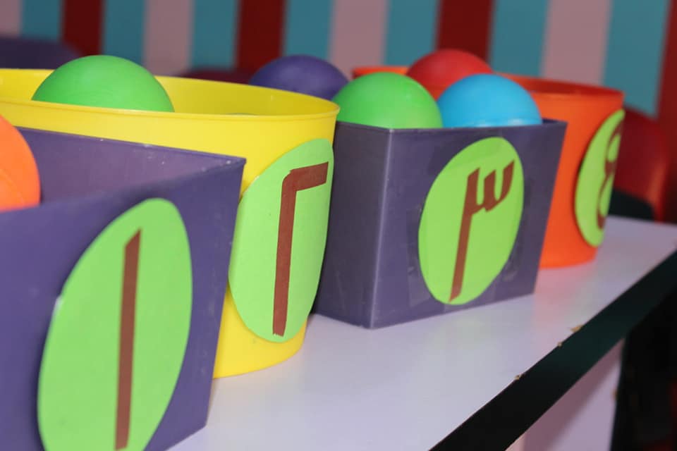 يُعطى الطلاب مجموعة كرات.. والمطلوب عند ذكر المعلمة لاسم صلاة لمغرب مثلا ان يرمي الطالب الكرة في الصندوق الذي عليه عدد ٣، وهكذا لباقي الصلوات، ويكون بشكل تفاعلي تنافسي بين الطلاب..