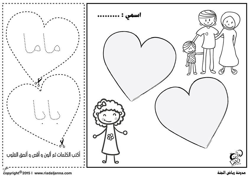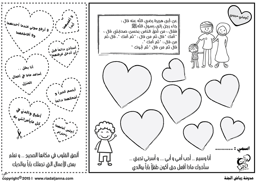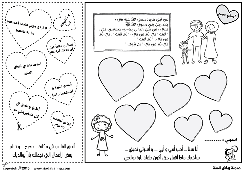 أوراق عمل ممتعة لتعليم قيمة بر الوالدين للأطفال مصممة على مستويات للأطفال من سن 4 سنوات و حتى 9سنوات