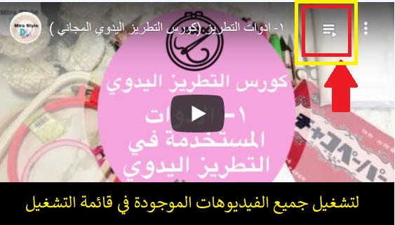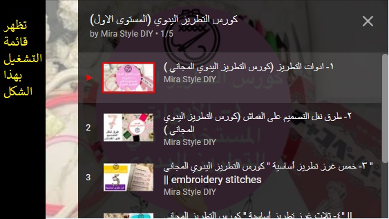كورس التطريز اليدوي المستوى الأول (قائمة تشغيل) :