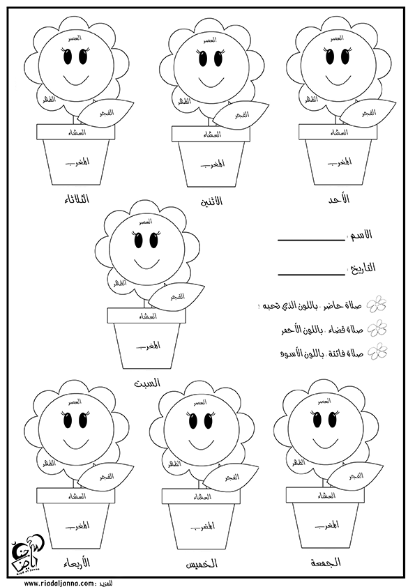 ومن الأفضل تعليق الورقة في مكان ظاهر للطفل لتذكره بأداء الفرائض في اوقاتها …