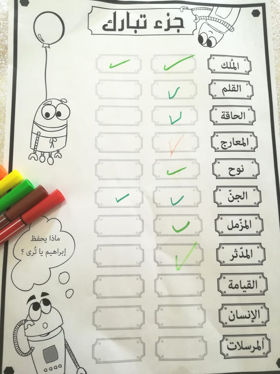 ماشاء الله لاقوة الابالله…بارك الله فيك وفي جهودك الله يكتب أجرك..أعطيتني افكار كثيرة لطالباتي..هل ممكن ان تعلمني كيف أمهد لهم سورة الناس والفاتحه ؟ وماهي الأشياء التي يجب الحرص عليها ؟ شاكرة لك وتعاونك..