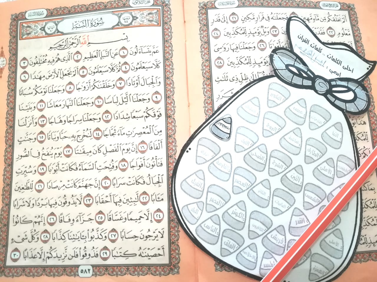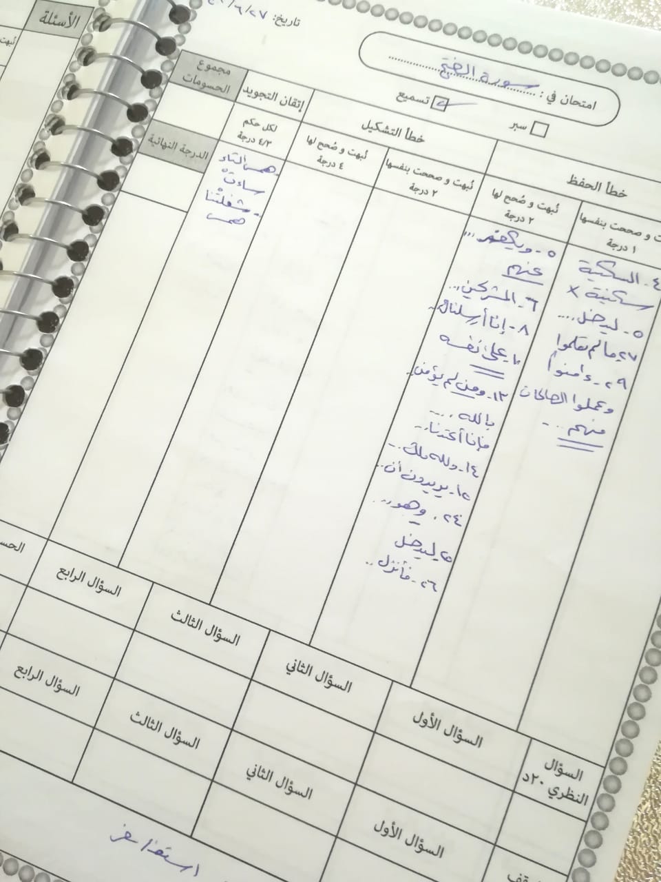 هذا دفتر صممته لطالبات حلقة التحفيظ لتسجيل حفظ كل فتاة مع الأخطاء التي بدرت منها خلال التسميع حتى تتجنبها في المرة التالية عند المراجعة.. وكذلك نستخدمه لحساب العلامات على التسميع بحيث تحذف علامات حسب الخطأ .. و اذا كان ينقصها  10 علامات فأكثر يجب أن تعيد مراجعة وتسميع المقدار الذي سمعته … وإذا نقصها علامة فقط أو علامتان تحصل على صورة  ( ستيكر ) وعندما تجمع 10 صور إتقان يكون لها هدية بسيطة ..(يمكنني نشر نسخة قابلة للطباعة إن أحببتم أخبروني بذلك في التعليقات )