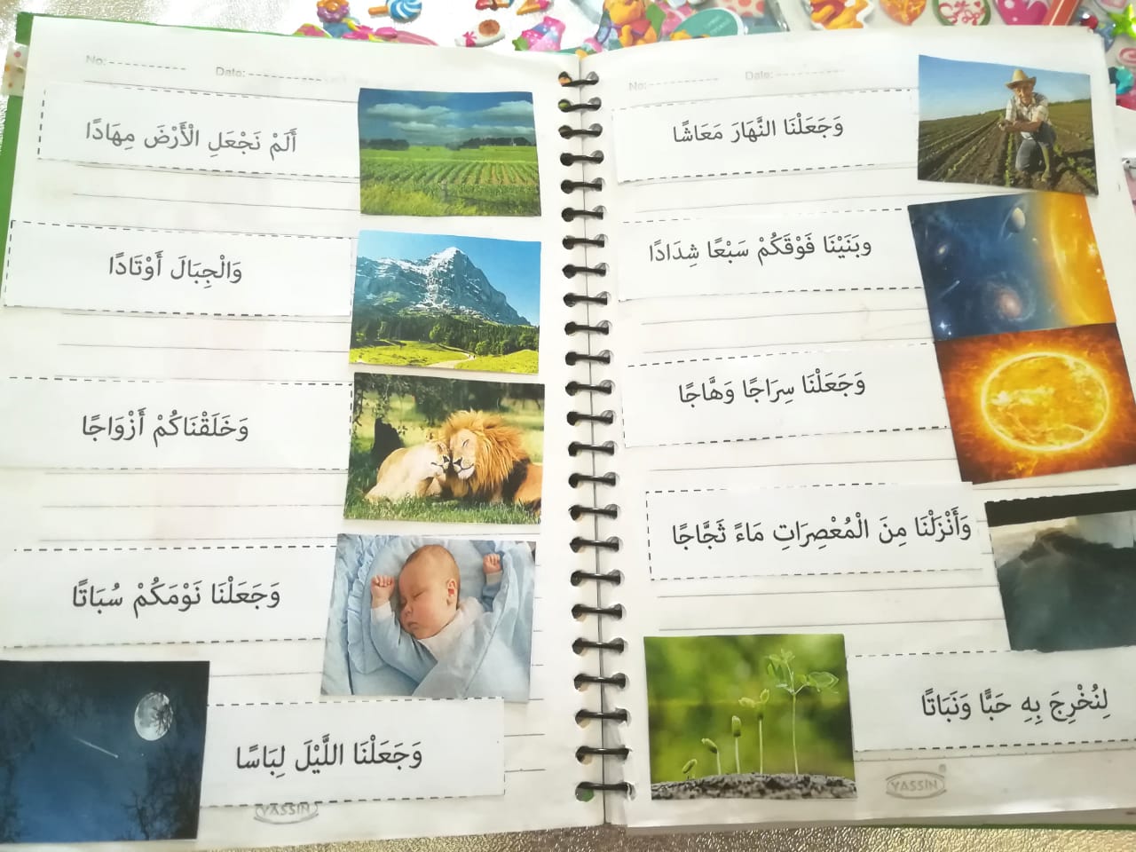 يمكنك أيضاً رسم رسومات بسيطة للتذكير بالآية مع التأكيد على عدم حصر المعنى في المرسوم فقط .. وعلى عدم رسم الغيبيات