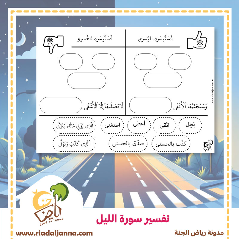 أوراق عمل تفسير سورة الليل للأطفال :
