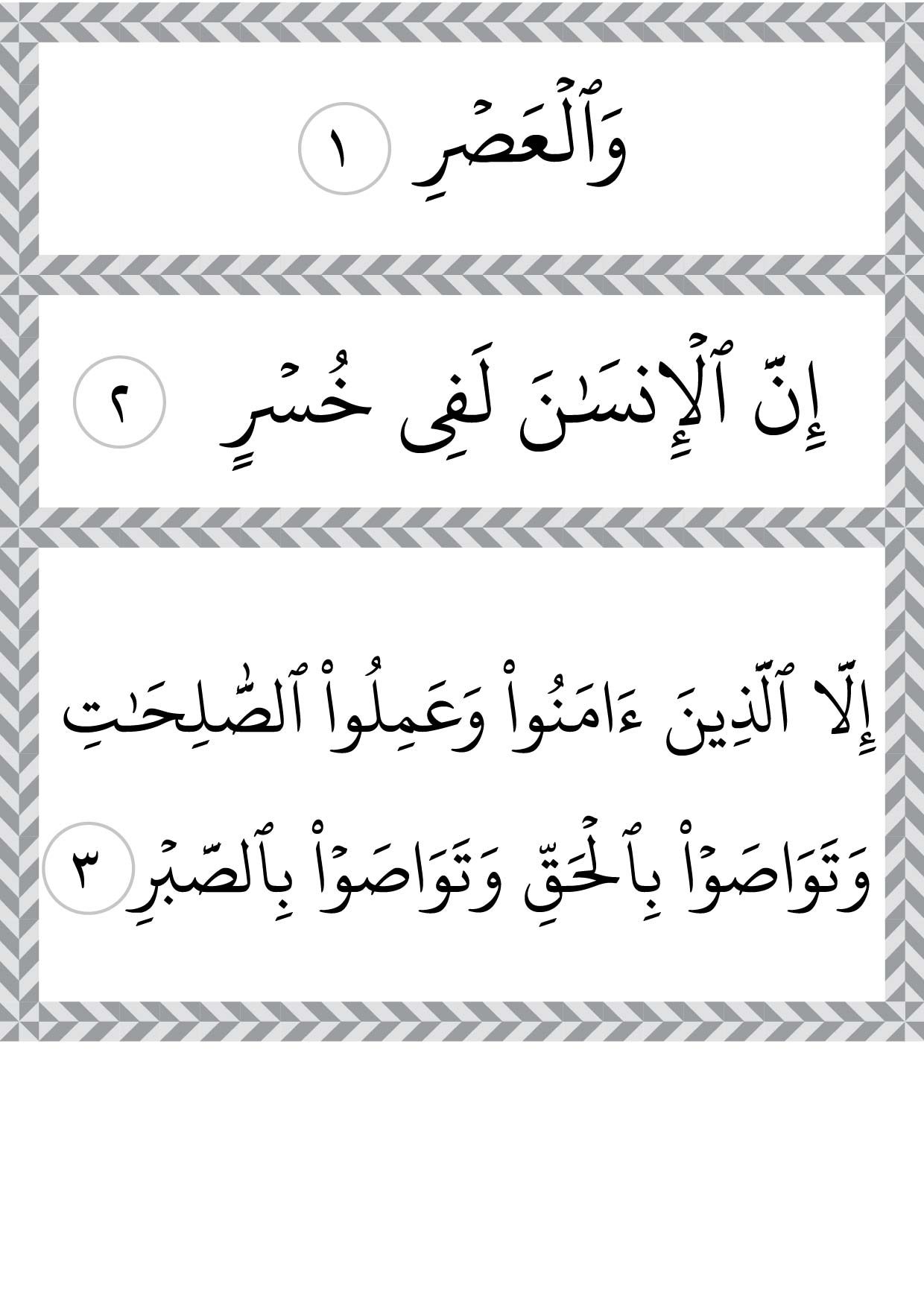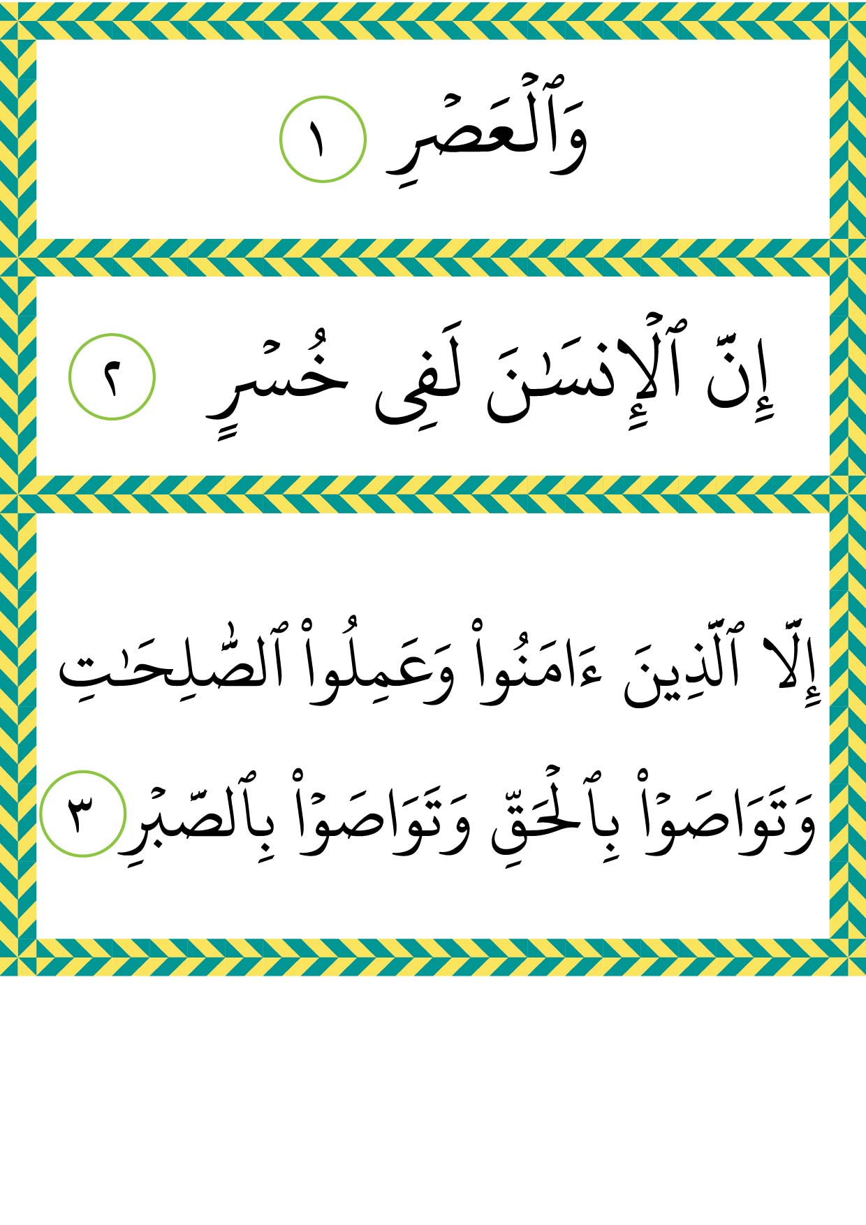 تعال نتعرف على صفات الفائز من خلال قراءة سورة العصر … نفتح المصحف للطفل ليتعرف مكان السورة و رسمها ويقوم بعد آياتها