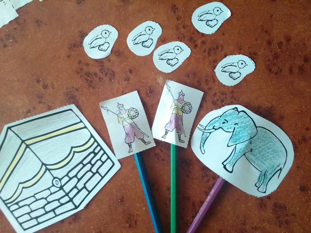الآن يمكنه أن يسرد القصة لك بنفسه … بإلصاق صور الشخصيات كما يحب على ورقة بيضاء … ليلصق صورة الكعبة ثم يحدثك عنها … ثم الجيش و الفيل و يشرح لك ما الذي حدث و أخيرا صورة الطيور …