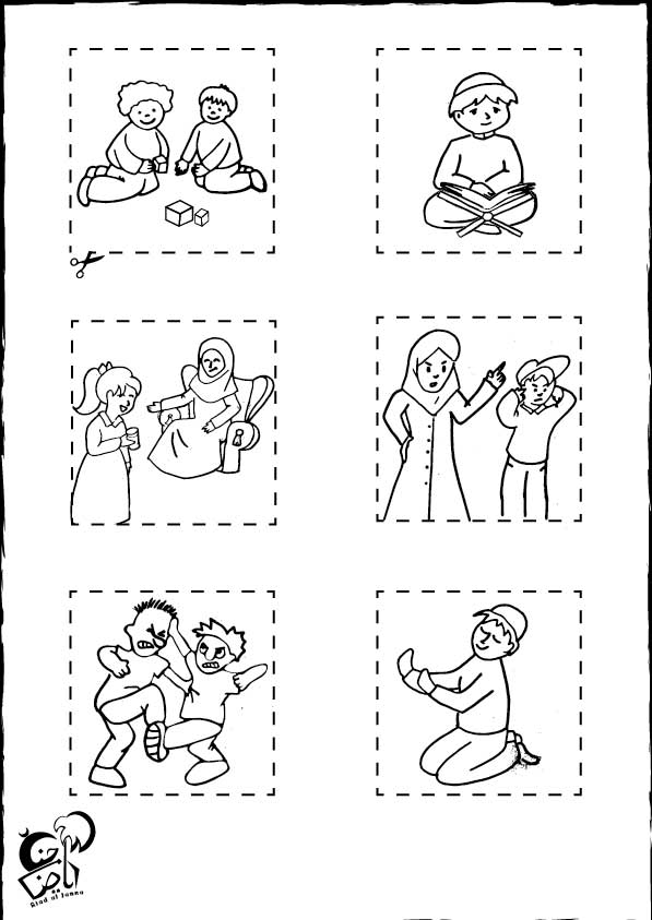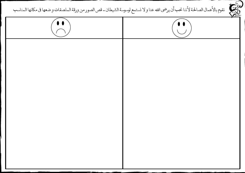 • أوراق عمل ممتعة حول أعمال ترضي الله عز و جل و أعمال أخرى تتبع وسوسة الشيطان