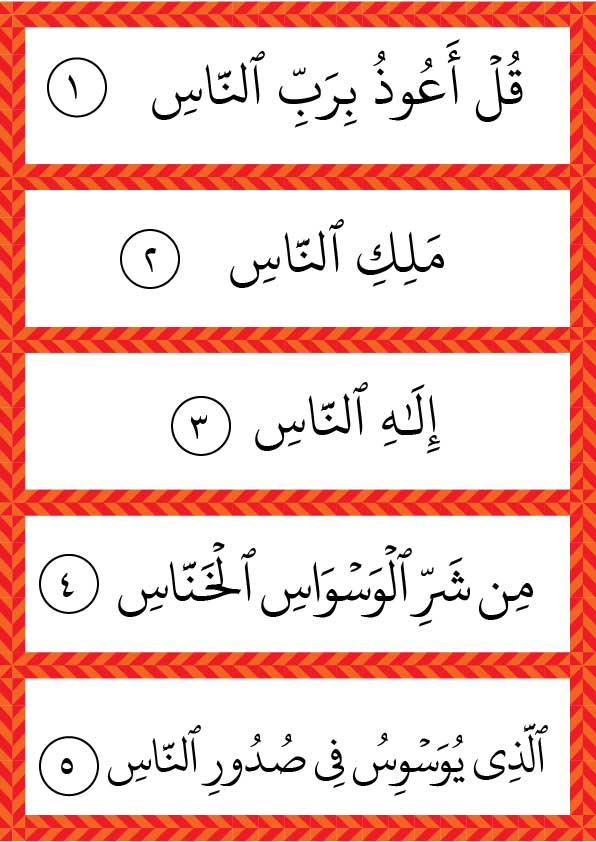 اسمها سورة الناس .. وهي سورة مهمة جداً علمنا رسول الله صلى الله عليه وسلم أن نقرأها دائماً قبل النوم و في الصباح لأنها تحمينا …