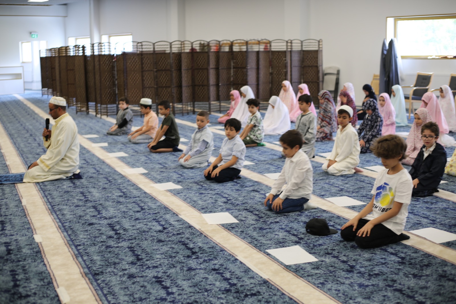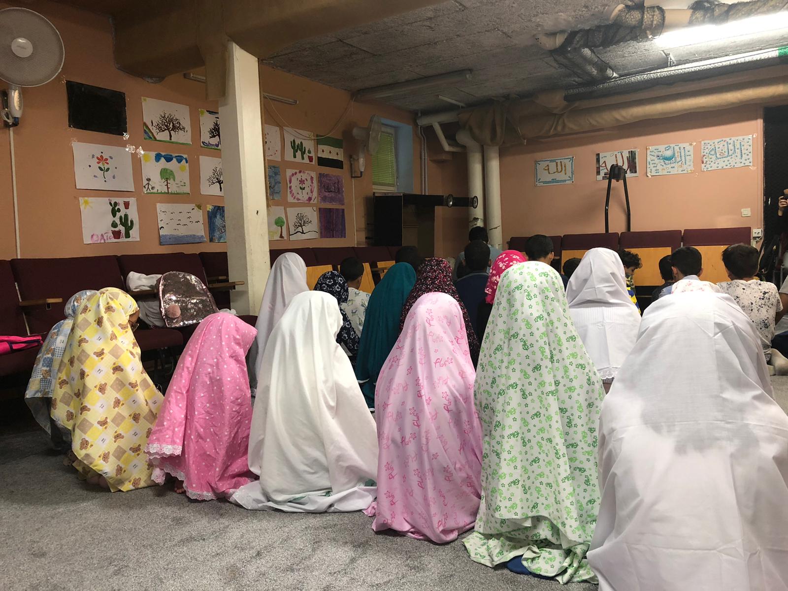 أقمنا الصلاة جماعة بقية اللقاءات، يؤذن لنا أحد الصغار ويقيم آخر … 😊