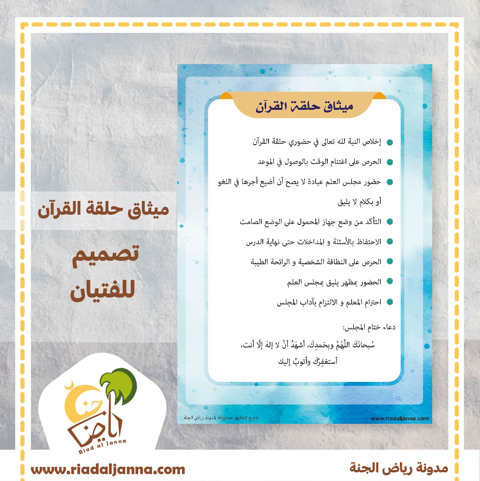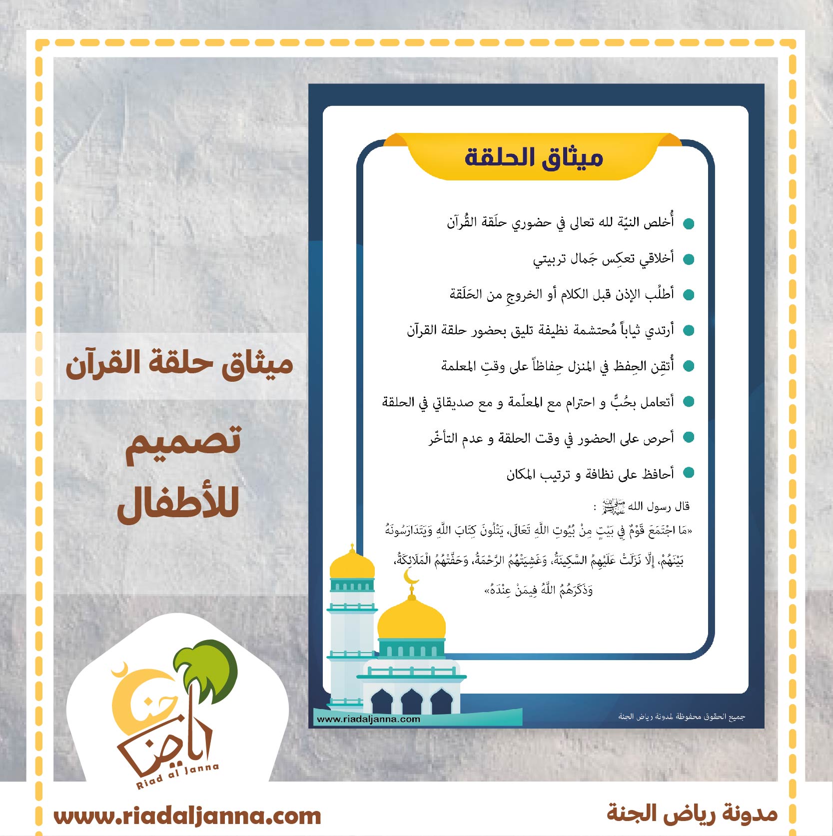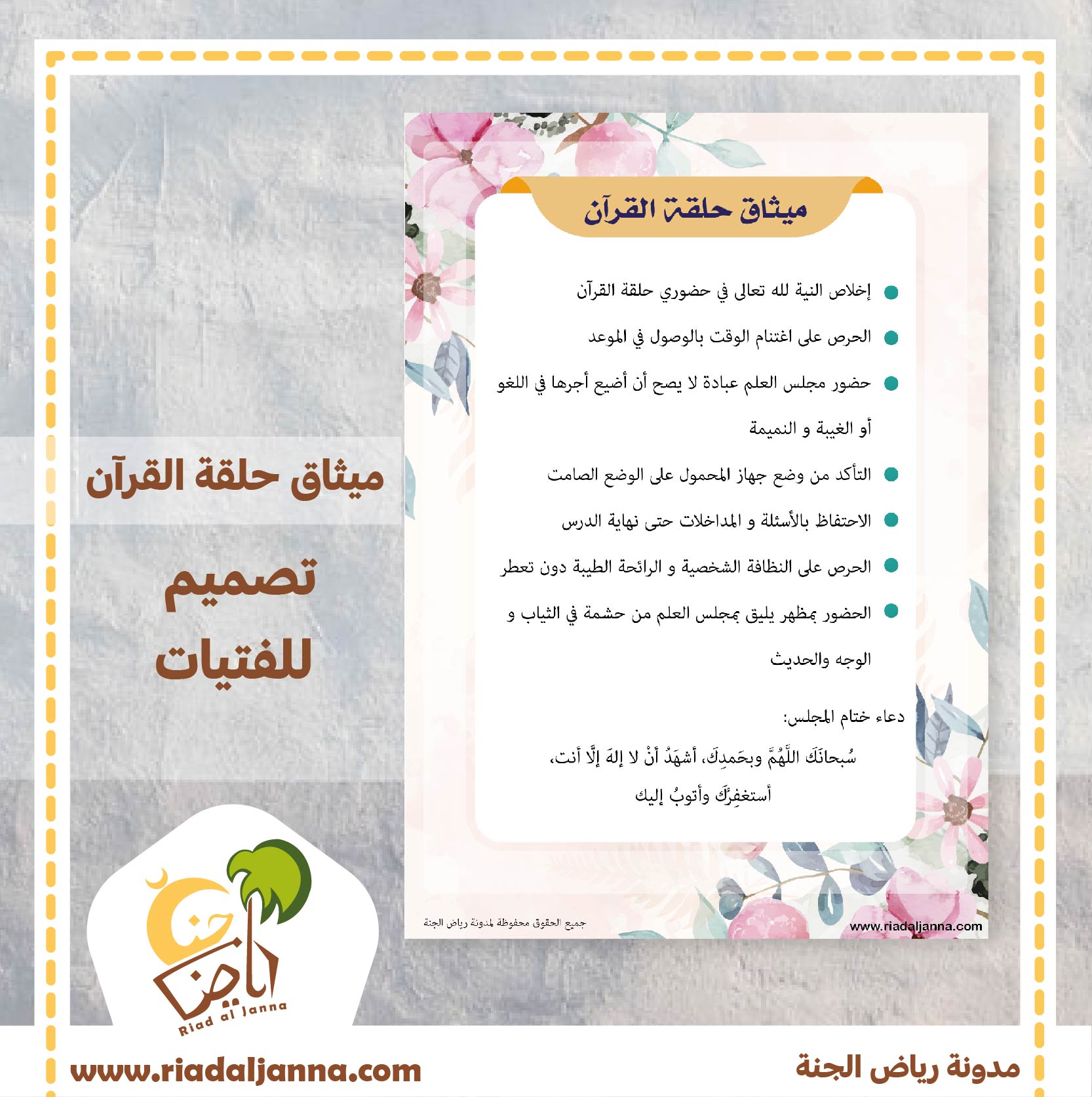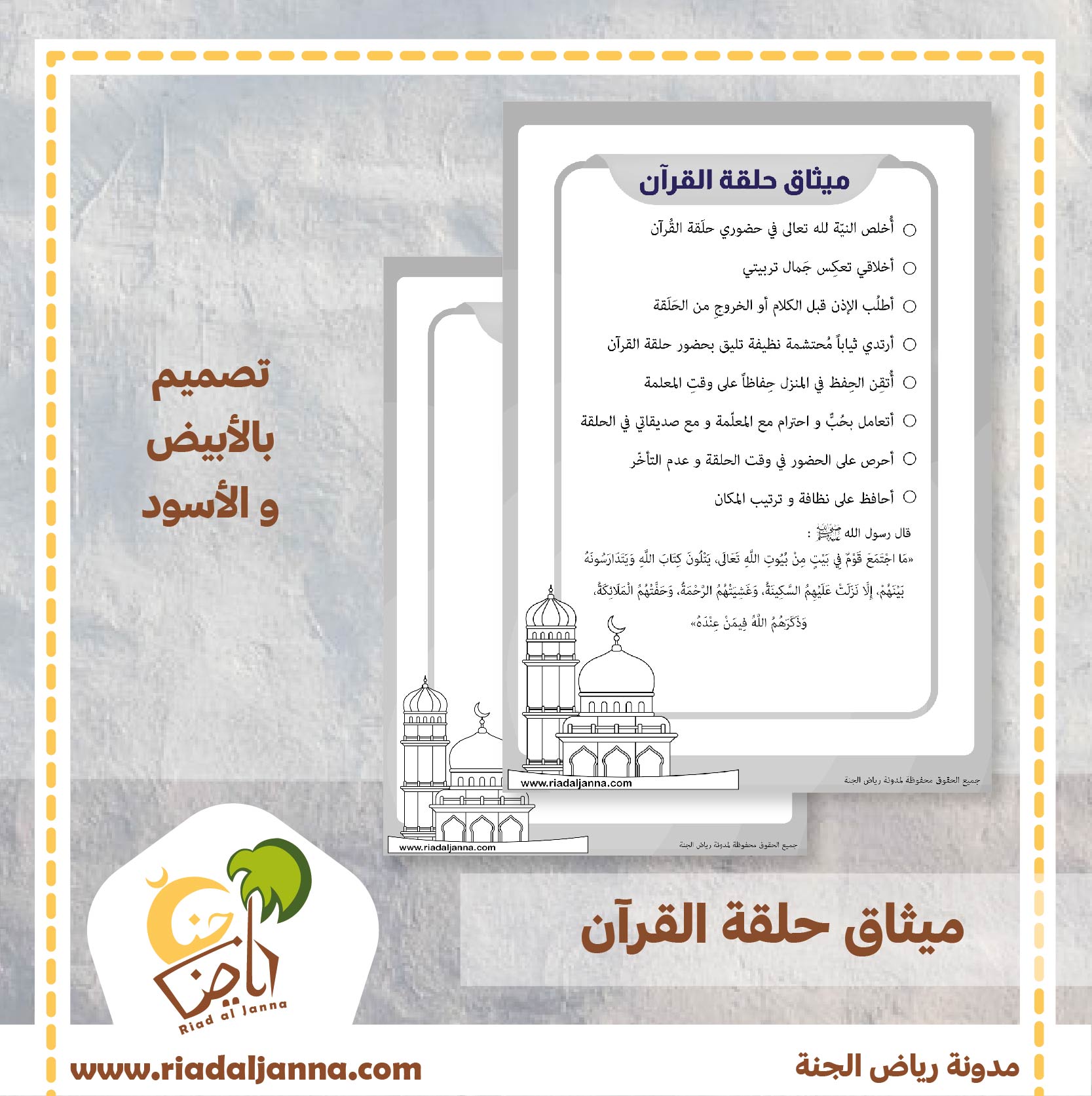 نقدم لكم في موضوع اليوم إحدى الوسائل التي نستخدمها في توضيح بعض قواعد حضور حلقة تحفيظ القرآن … وهي ميثاق حلقة القرآن الكريم ..