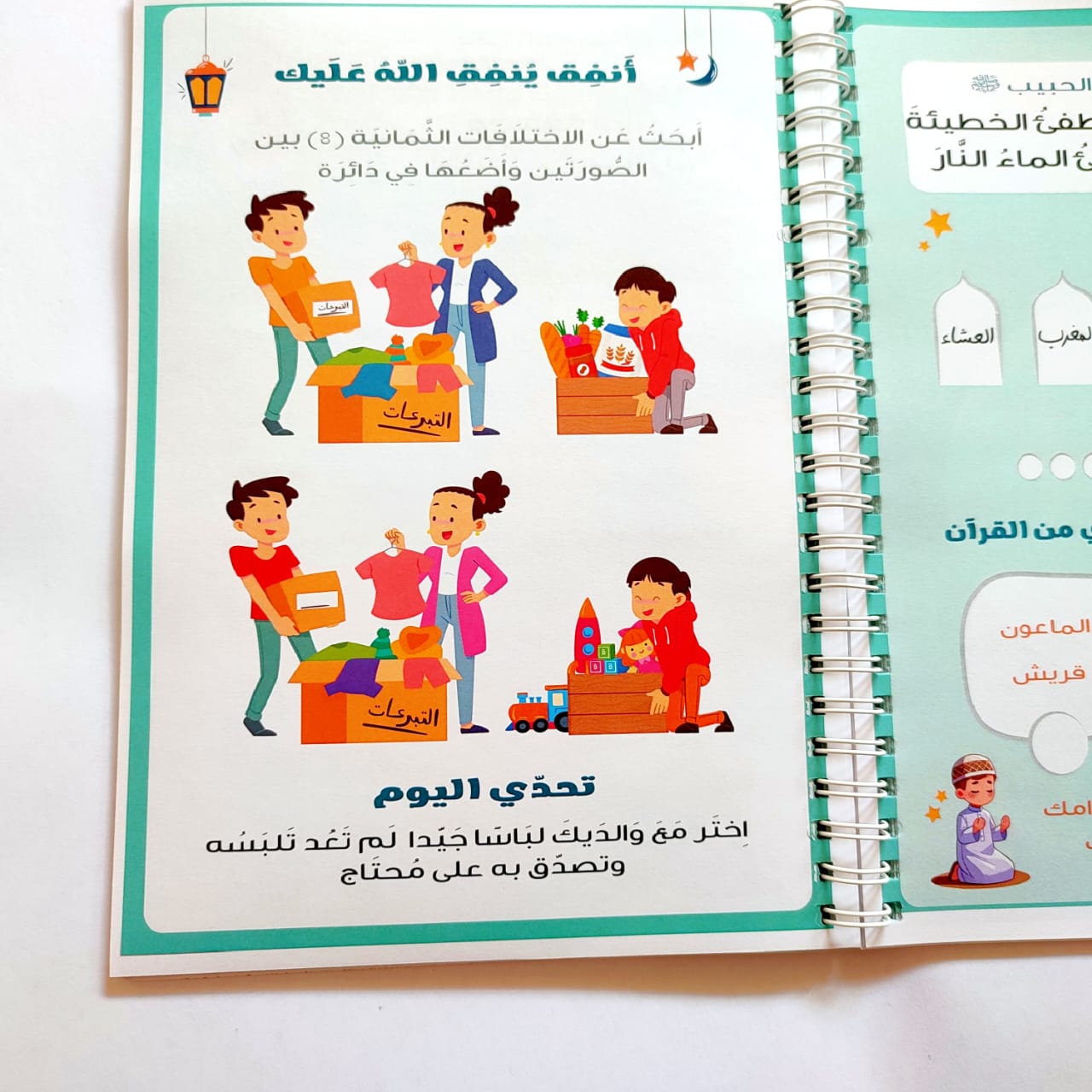 رحلة ممتعة عبر صفحات هذه المذكرة يقوم بها الطفل يومياً لتشجيعه على العبادات و الصيام و الذكر مع القيام بأعمال صالحة و الاستمتاع بأنشطة متنوعة