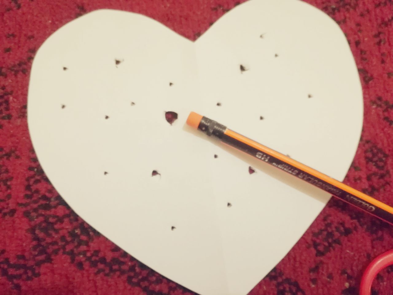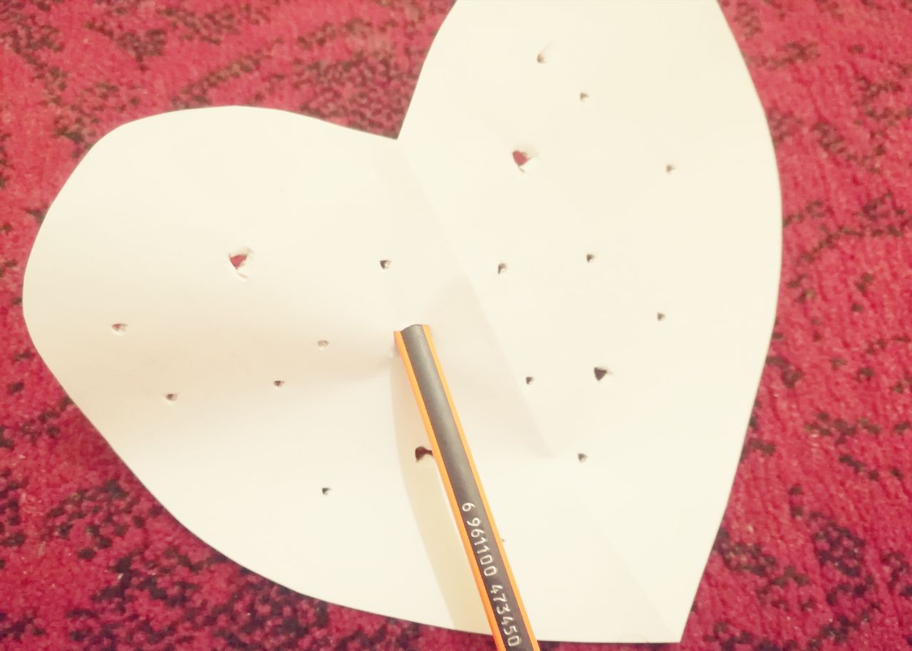 أحضري قلماً و اطلبي منه عمل ثقوب في القلب باستخدام القلم ( ثقوب وليس فقط علامات )