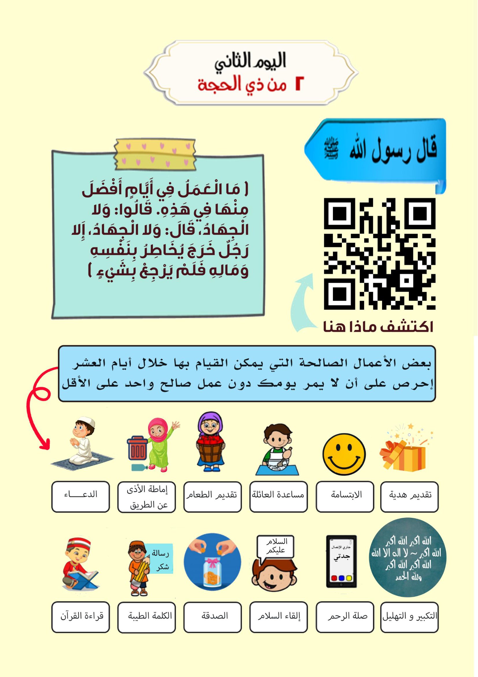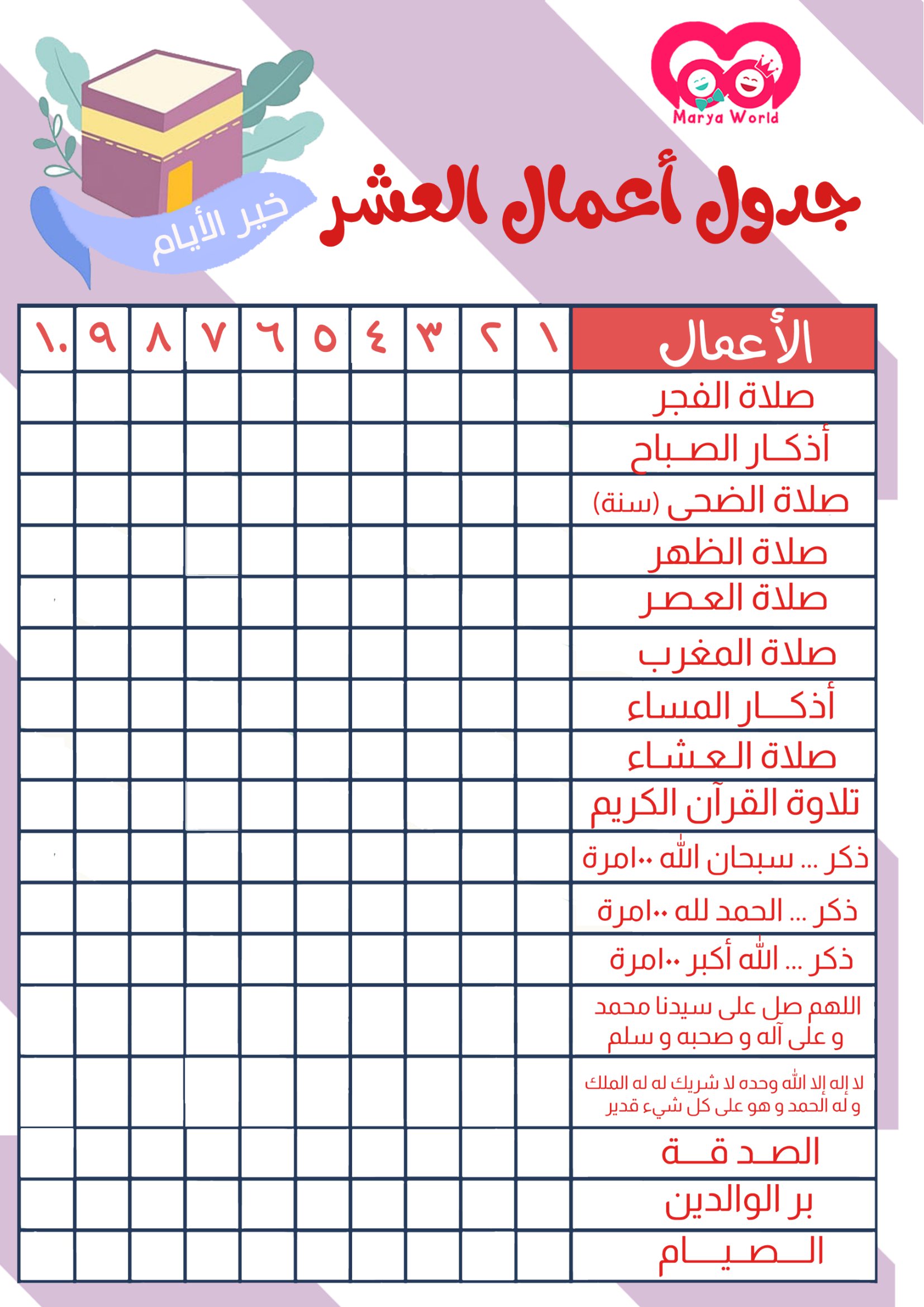 الملف متميز و شامل لأنشطة متنوعة و معلومات غنية … و صفحة لكل يوم من أيام عشر ذي الحجة …