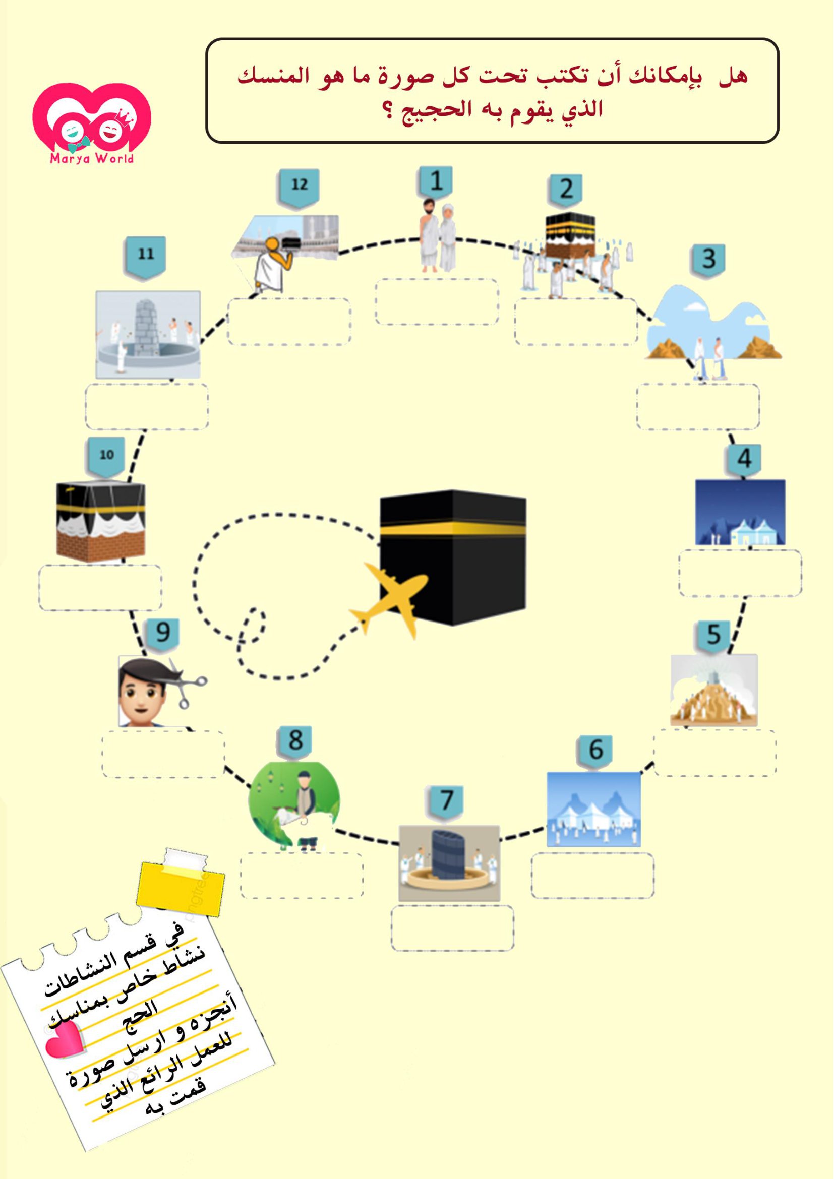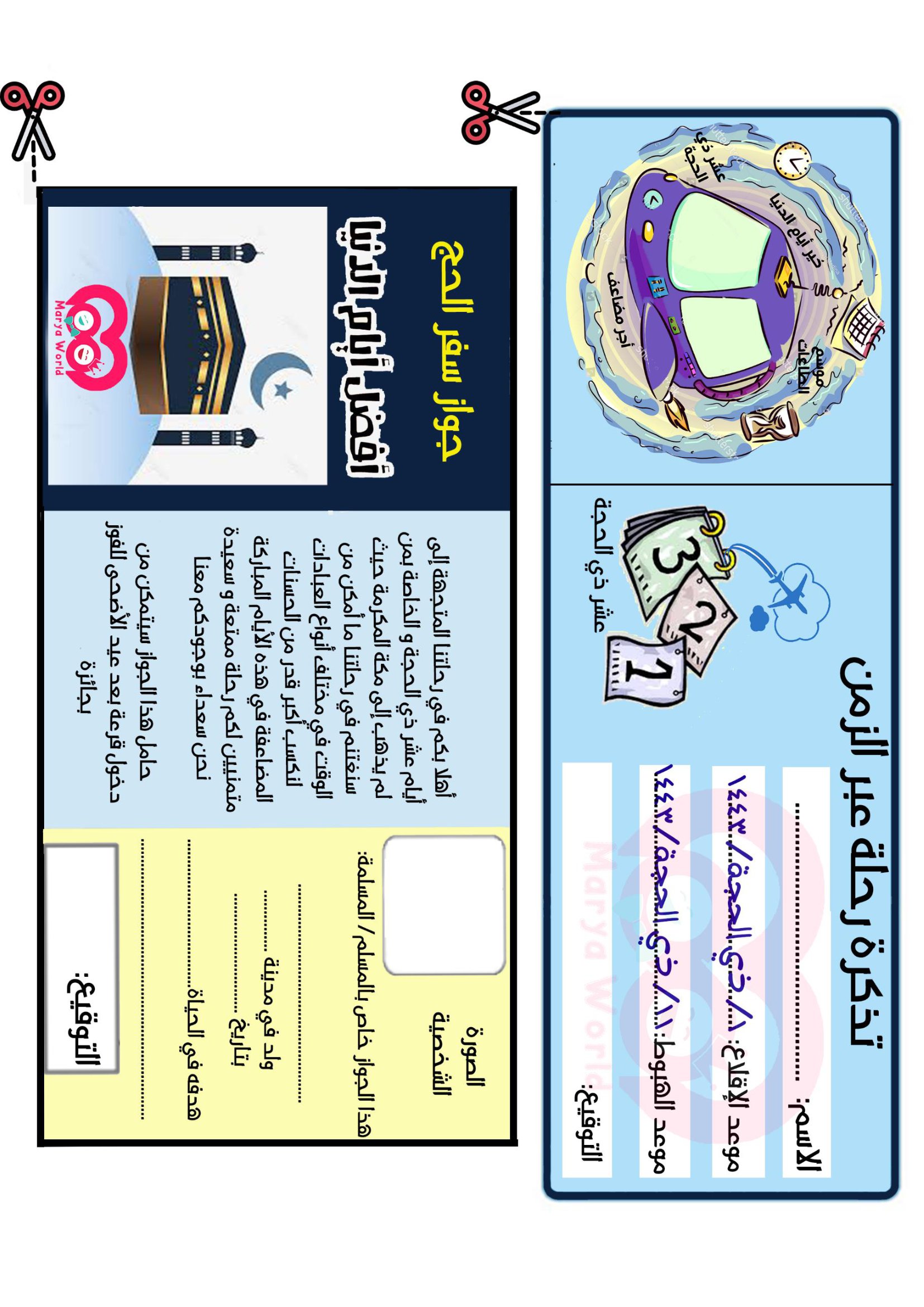 ملف مميز بتصميم مبهج يتضمن معلومات و أنشطة عن الحج و عشر ذي الحجة و عيد الأضحى للأطفال