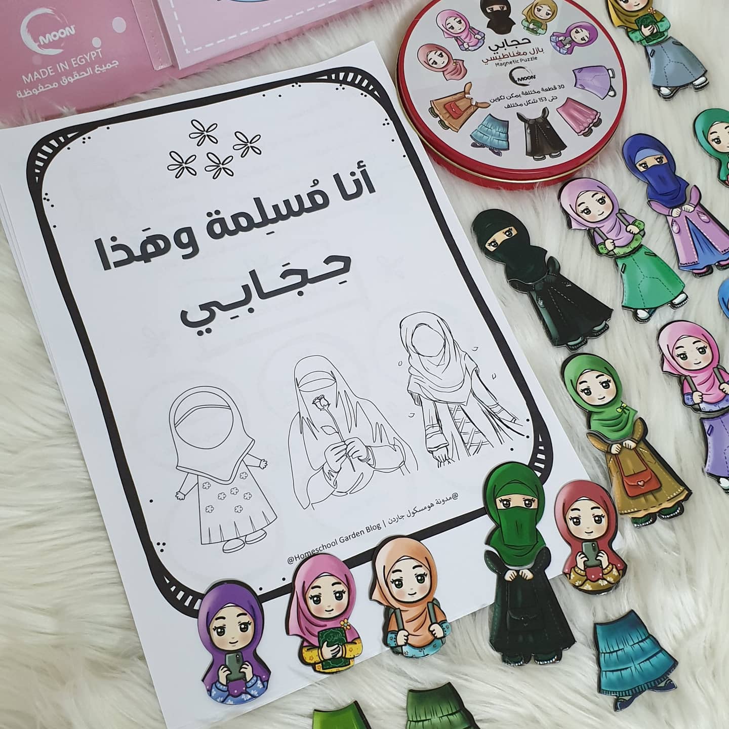 تتضمن أوراق العمل عناوين متسلسلة تبدأ بإجابة سؤال “لماذا أرتدي الحجاب؟”، ثم “أين أمرني الله بالحجاب؟” و”ما شكل حجابي؟” و”متى وأين أرتدي الحجاب؟”.