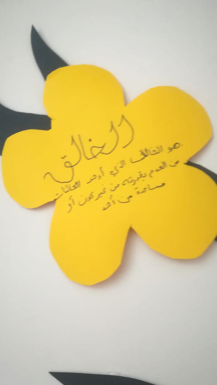 • سجلت الحديث و الاسم على اوراق قام الاطفال بقصها مسبقاً… الصقنا الاوراق على الشجرة….