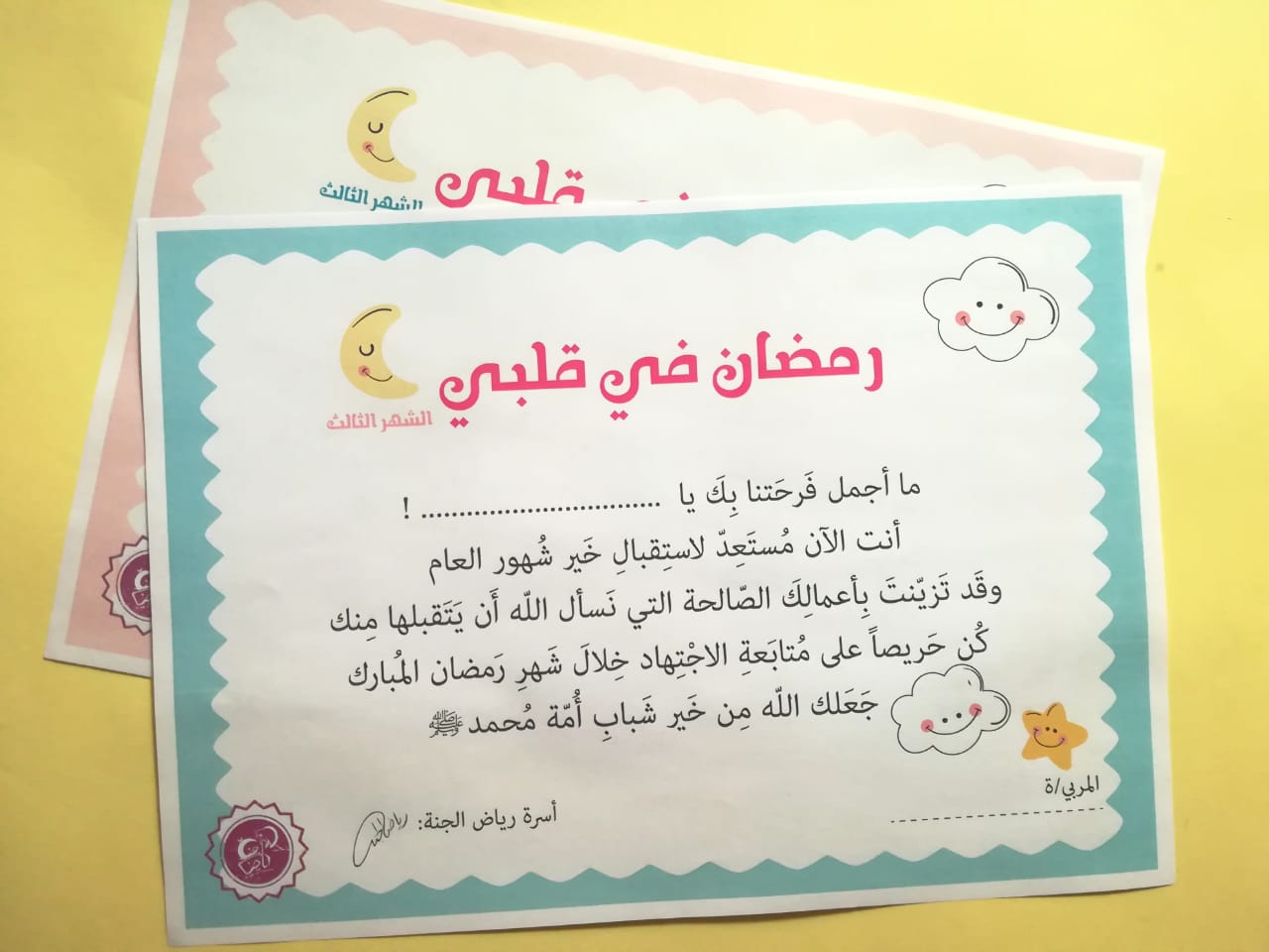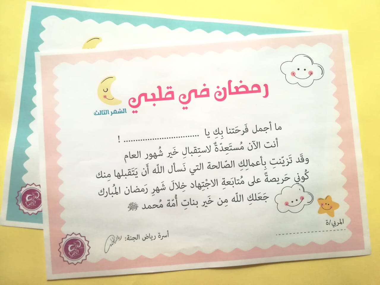 - شهادة ختام المرحلة الثالثة والأخيرة من البرنامج وقد صممناها بنسختين واحدة للأولاد و الثانية للبنات