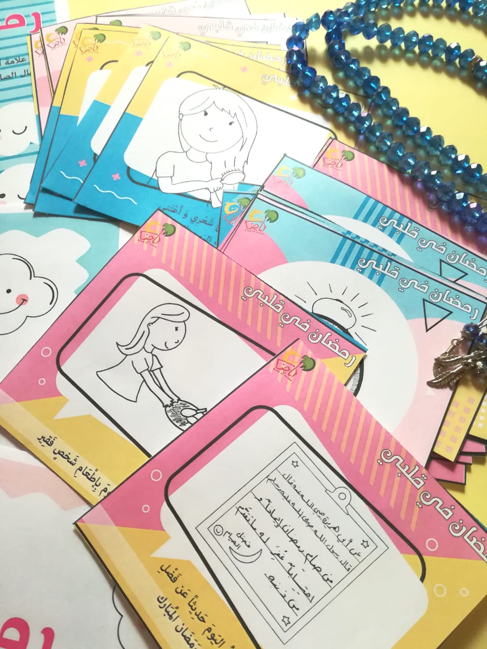 - بطاقات الأعمال .. و هي أعمال صالحة متنوعة تختلف عن أعمال المرحلة الأولى .. بعضها تعبدية و بعضها لتهذيب الأخلاق و بعضها لتوطيد العلاقة مع الأهل و الناس وكلها لها أصول في ديننا الحنيف لكن تم ذكرها للطفل بطريقة طريفة مرفقة برسوم محببة … و أنتهز هنا الفرصة لأشكر الأخت مروة بايزيد لمشاركتها الرائعة في عمل رسوم هذه المرحلة