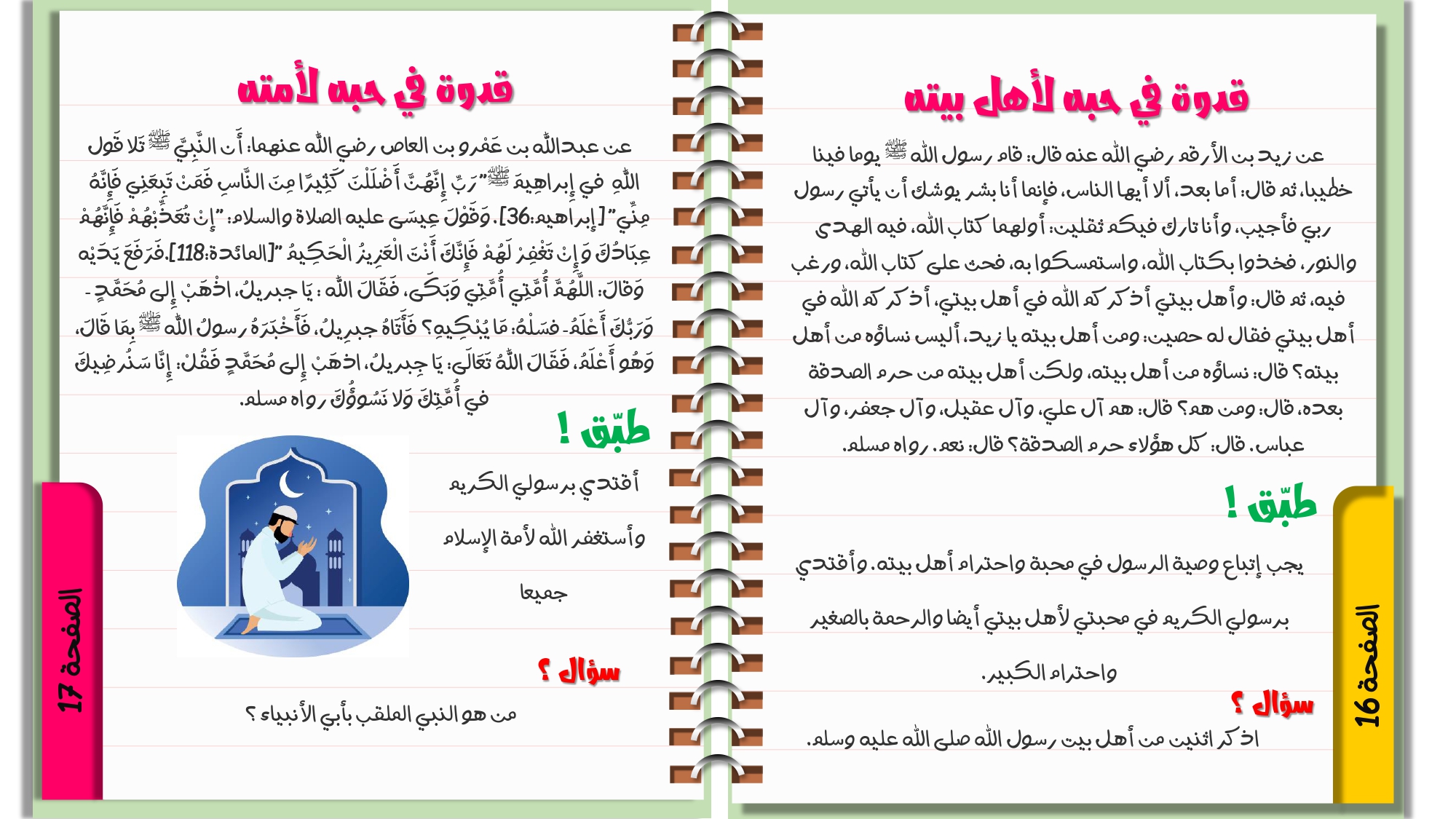 وفيه ثلاثون ورقة كل منها يقدم واحداً من جوانب الاقتداء برسولنا … و في ذيل الصفحة سؤال للبحث متعلق بالموضوع .. و تجدون الإجابات كاملة بنهاية الملف ..