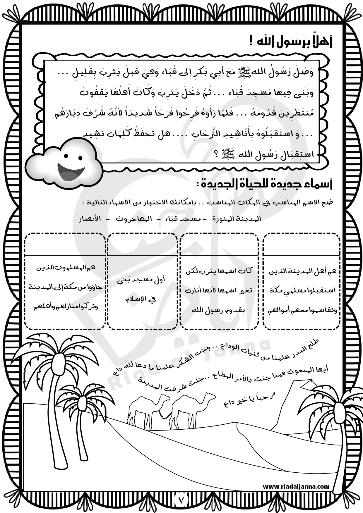 أوراق عمل تشرح قصة الهجرة النبوية للأطفال مع تمارين ممتعة و رسوم للمسجد النبوي قديماً و حديثاً بأسلوب مبسط محبب للأطفال … لا يفوتكم تحميلها الآن
