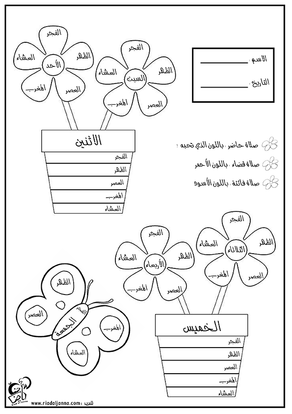 ومن الأفضل تعليق الورقة في مكان ظاهر للطفل لتذكره بأداء الفرائض في اوقاتها …