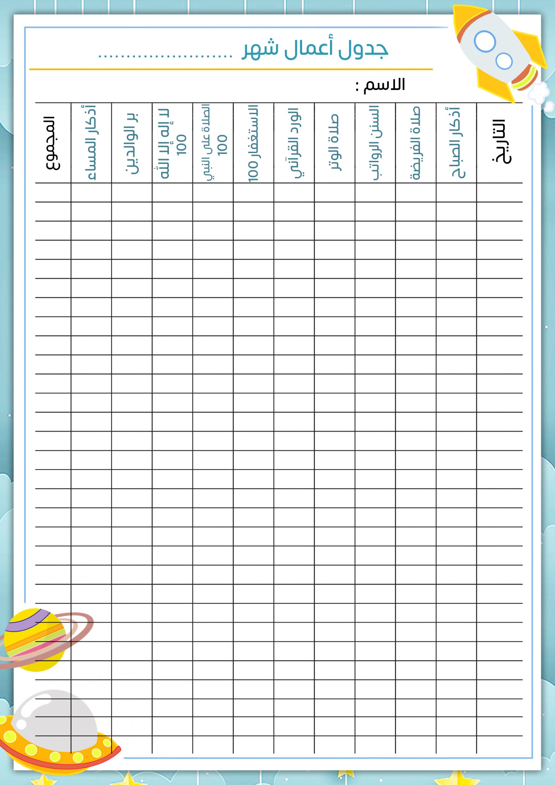 برامج عبادة بتصميمين مختلفين للإناث و الذكور لعشر ذي الحجة و نسخة مفرغة لبقية الشهور