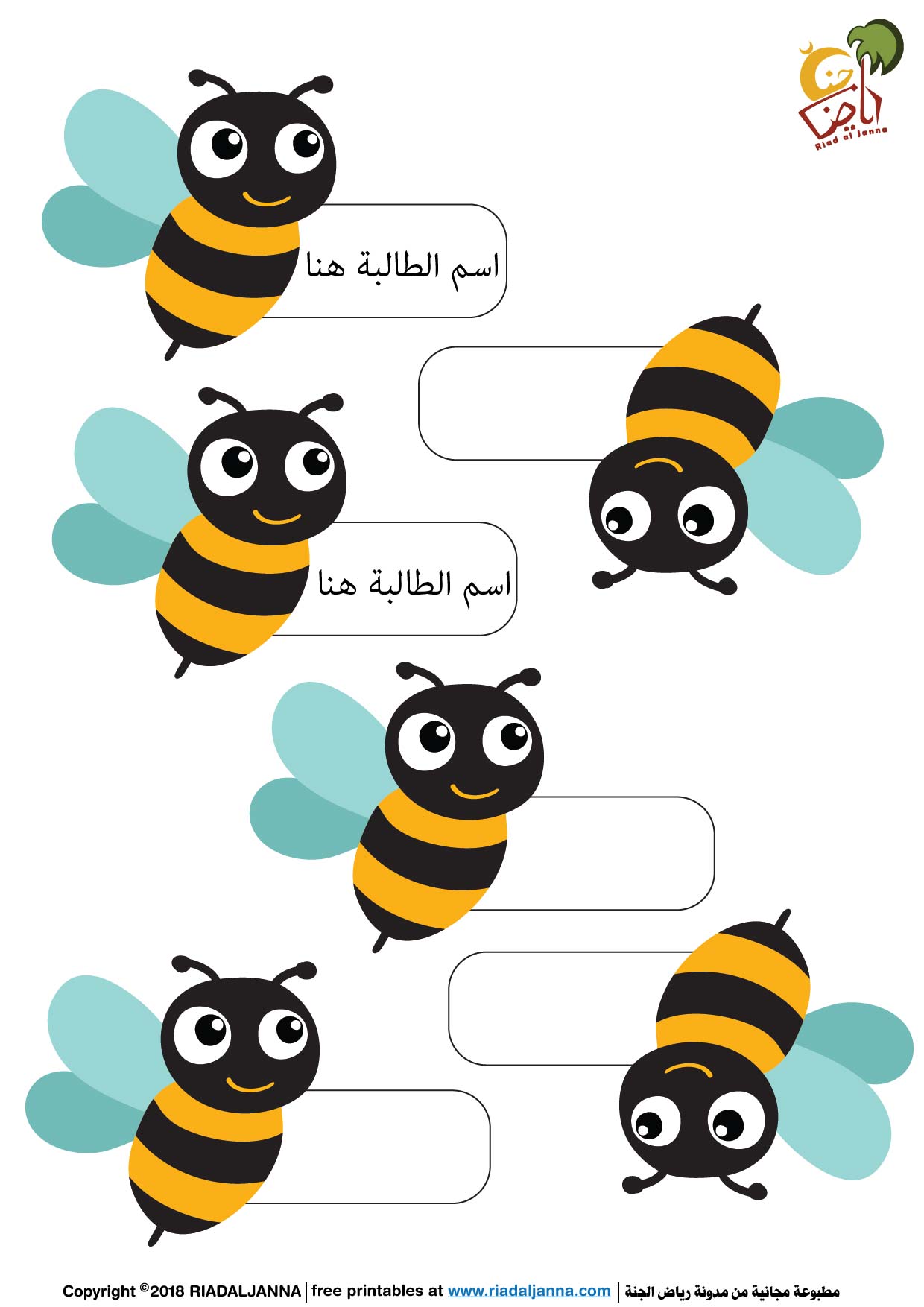 النموذج الثاني : صور النحلات نكتب في المستطيل امام كل نحلة اسم أحد الطلاب ونلصق بجانب اسمه واحدة من الخلايا وفي هذه الخلية سنكتب ما جمع من النقاط كل مرة.