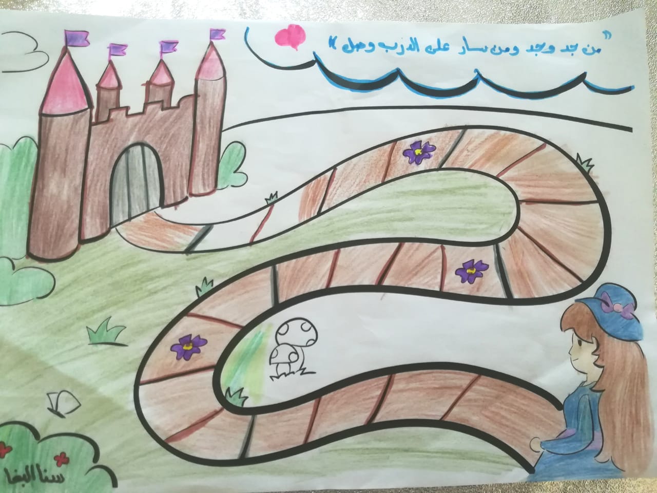 هذا البرنامج لعمر أكبر صممته لابنتي بحيث يكون هدفة حفظ 5 أجزاء .. كل خطوة على الطريق هي 5 صفحات .. عند الوردة تكون هدية بسيطة حتى نصل للقصر حيث الهدية الأكبر و حفل بسيط عائلي نحمد الله فيه على إنجازنا و نشجع الطفلة لتكمل .. ( يمكنني نشر نسخة قابلة للطباعة إن أحببتم أخبروني بذلك في التعليقات ) ويمكنك بسهولة رسم رسومات بسيطة لطفلك ليلونها …