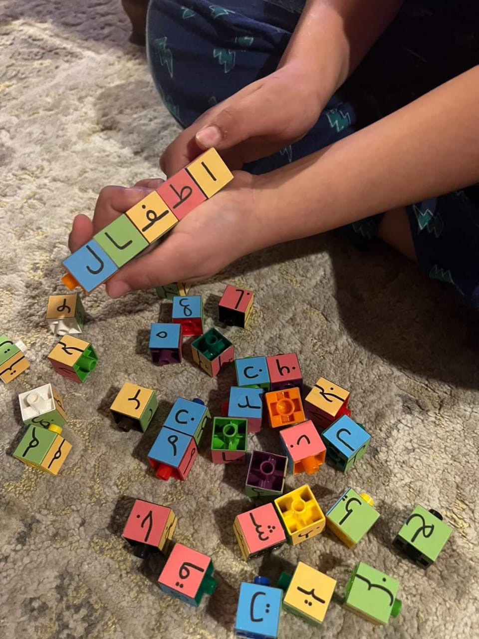 – الان بامكان الطفل تجميع احرف اي كلمة و اختيار حالة الحرف المناسب لتشكل كلمة صحيح