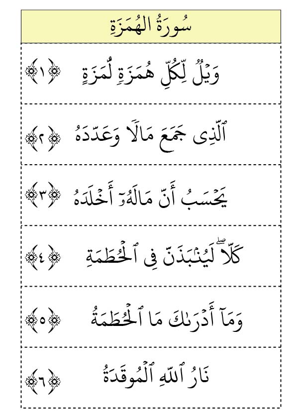 لتحميل ملف سورة الهمزة كاملاً … من صندوق ملفات التحميل في نهاية المقال