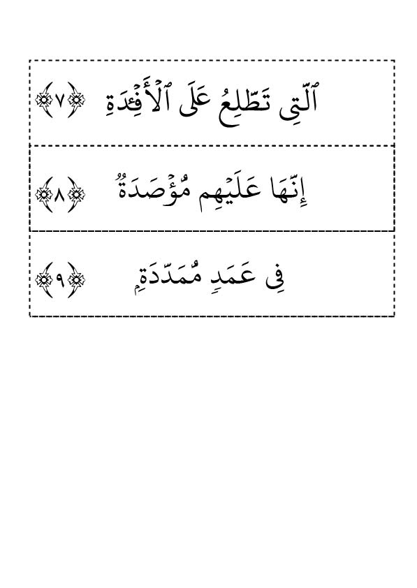 ثانياً : بطاقات تلقين سورة الهمزة للصغار: