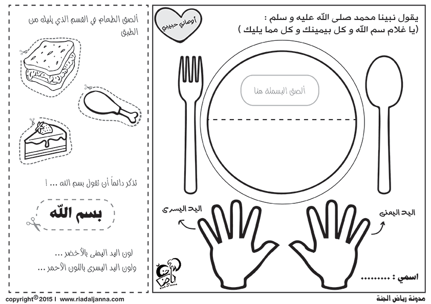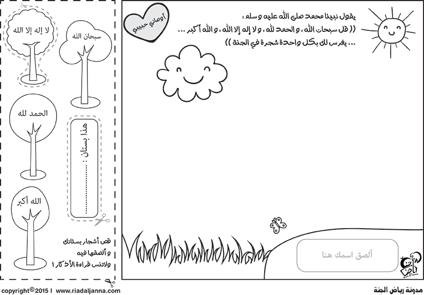- لا يمكن طباعة أي من مواد رياض الجنة بغرض بيعها أو استخدامها بأي نشاط تجاري