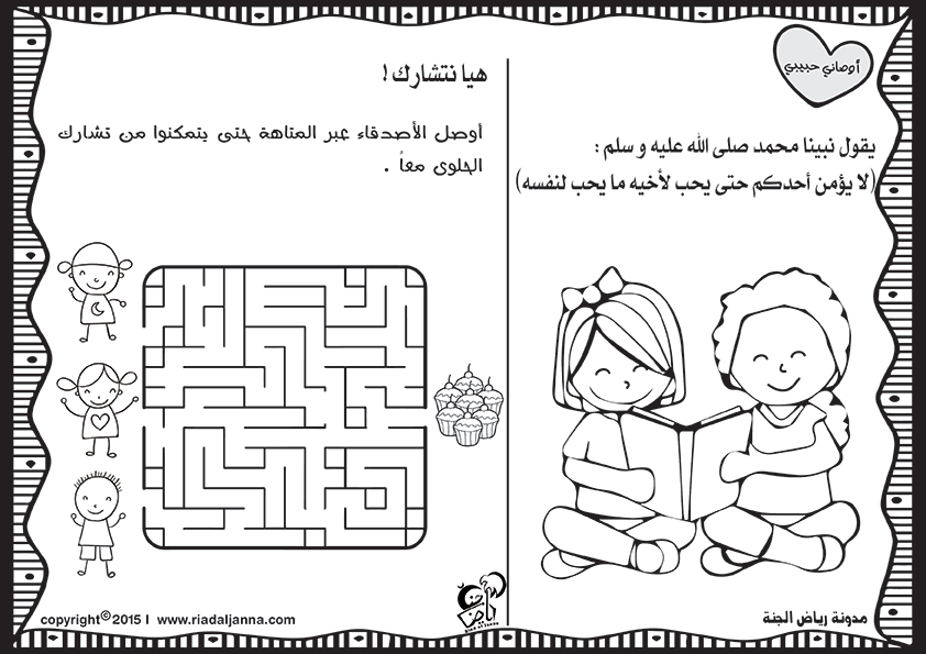 سلسلة لطيفة ممتعة من أوراق العمل للأحاديث النبوية القصيرة للأطفال
