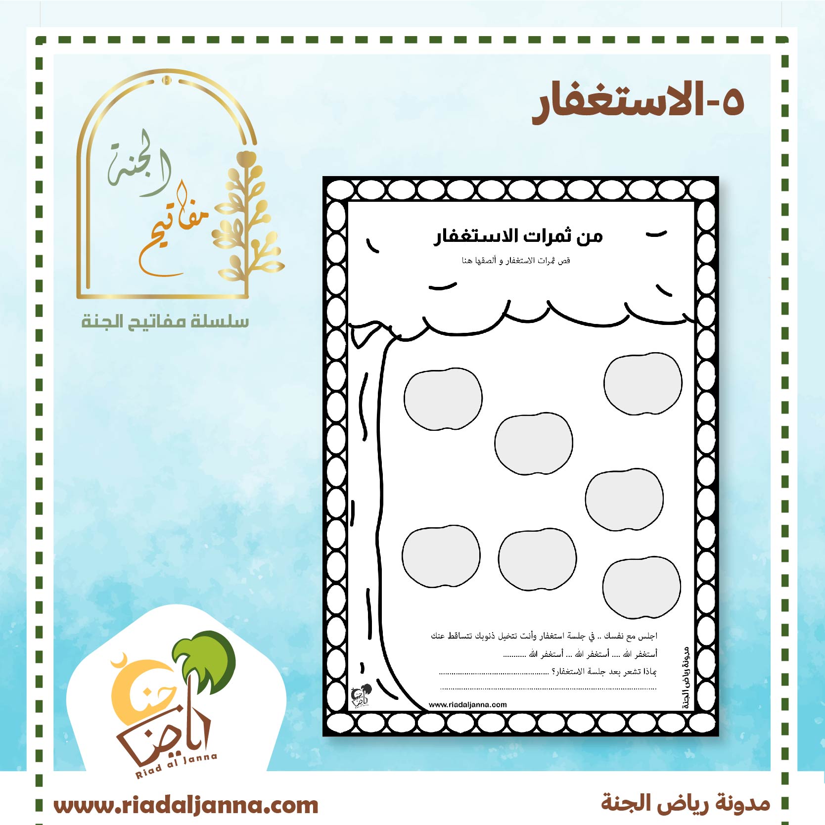 يقص الطفل و يلصق ثمرات الاستغفار ويحفظها ويمكن تشجيعه على الاستغفار في سره أثناء القيام بالنشاط: