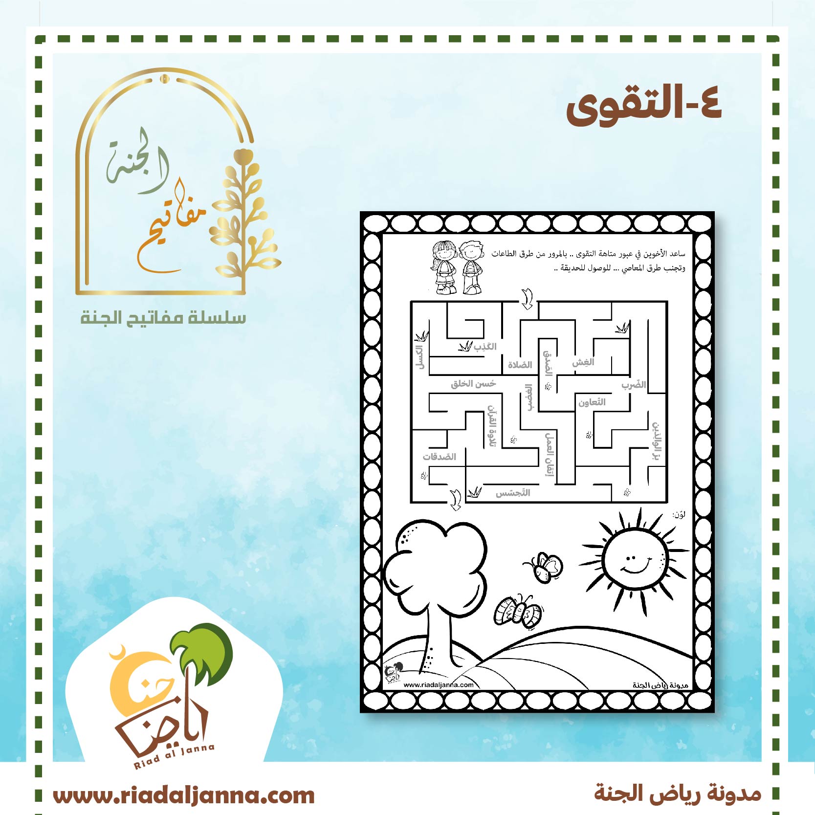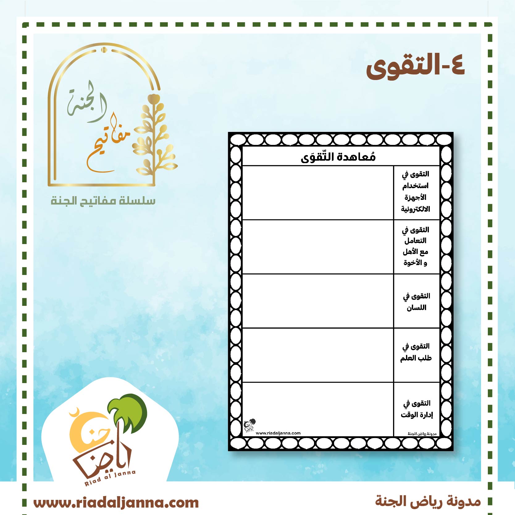 الأوراق الأخيرة هي نموذج للمفتاح الخاص بموضوع اليوم و هو التقوى … يحصل عليه الطفل عندما يقوم بتطبيق الأنشطة الخاصة بالموضوع…