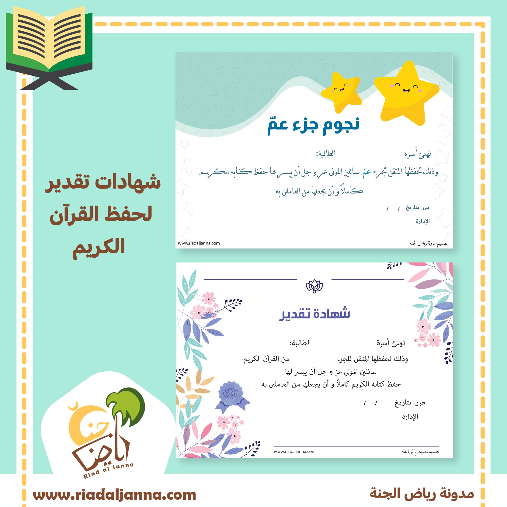 قد يهمك أيضاً:شهادات تقدير للتشجيع على حفظ القرآن و الصلاة