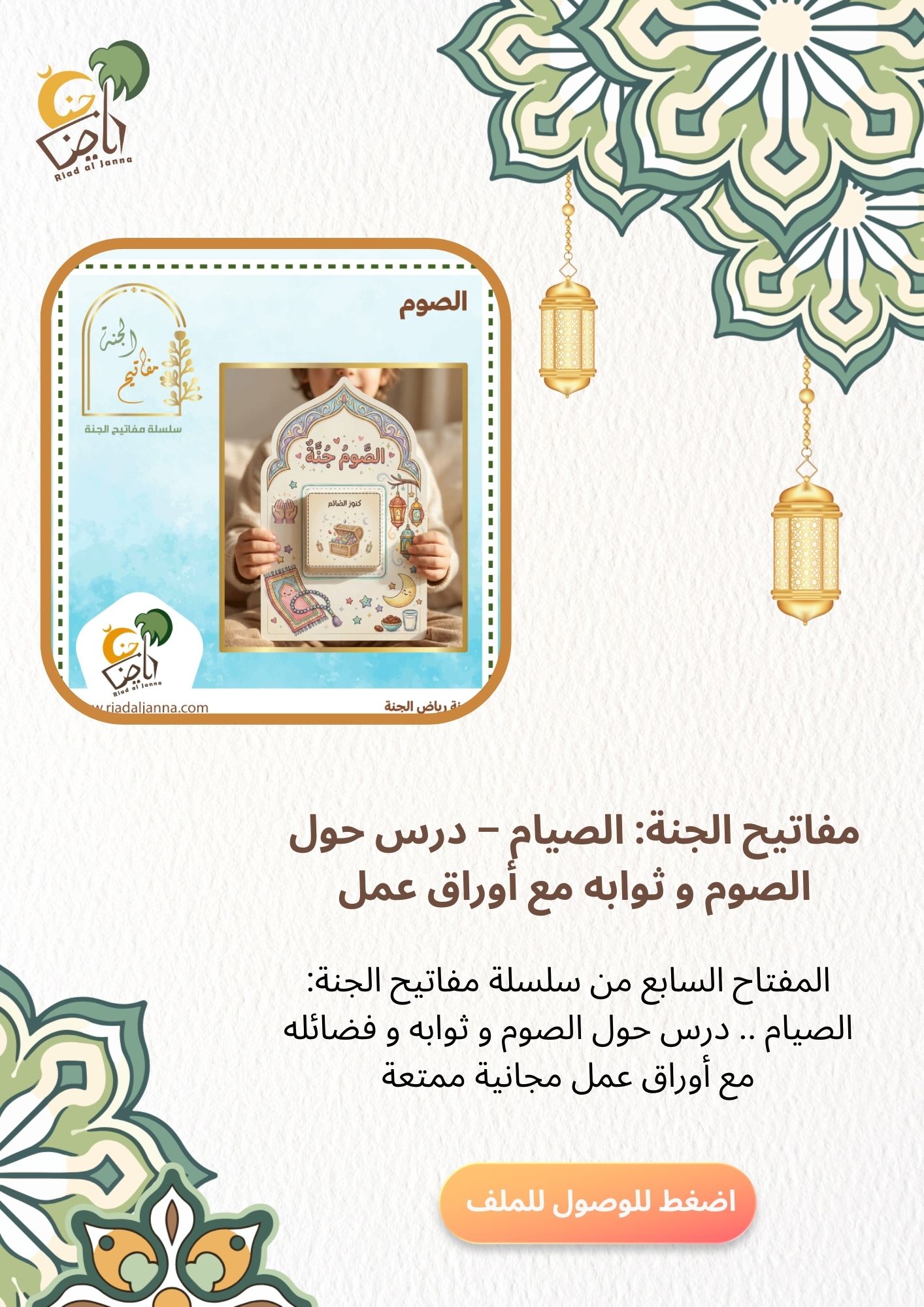 ملف PDF تفاعلي يجمع جميع إصدارات رمضان من مدونة رياض الجنة: أنشطة وأوراق عمل جاهزة للطباعة، مفكرات، جداول عبادات، شهادات، زينة، أذكار وأسماء الله الحسنى، وملفات أخرى كثيرة .. مناسبة لكل الأعمار.