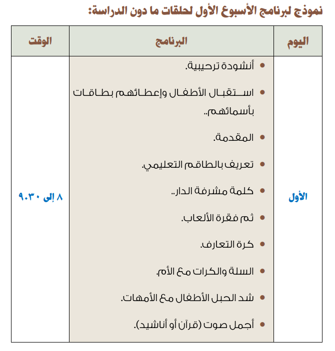 وهذه الحقيبة تشتمل على ما يلزم لمعلمات حلقات ما دون الدراسة من حيث جودة الأداء للمعلمة و اكسابها مهارات توطد علاقتها بالطفل و التعامل معه و ضبط إدارة الحلقة و فهم احتياجات الطفل و تميز الحلقة من حيث إتقان الحفظ و التلاوة و تفسير الآيات بأسلوب بسيط قريب لمستوى الطفل في جزئية التربية القرآنية و تعلم قراءة كلمات القرآن باستراتيجيات لا يشعر من خلالها بالإلزام الدراسي و الملل في جزئية القراءة و راعينا التنويع و كسر الروتين بالأنشطة التدريبية على مهارات ما قبل الكتابة …