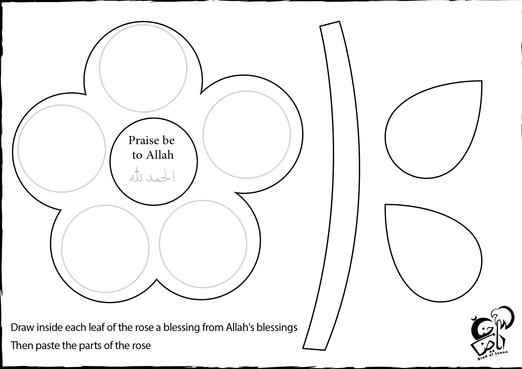 The first paper is an application on the meaning of praise be to God….. The child will draw things that God Almighty created for him.. One on each leaf of the rose…