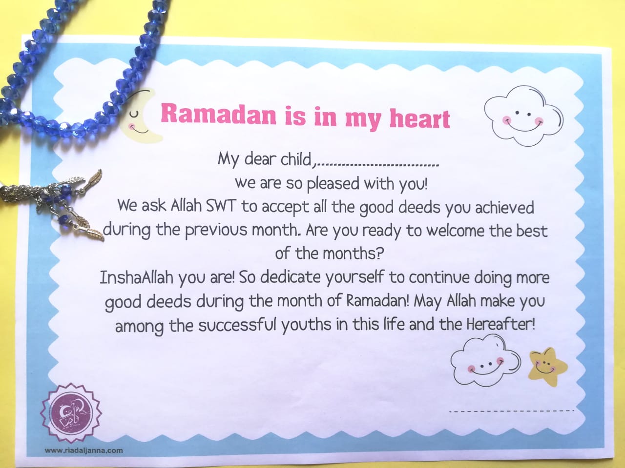 1- Start at the beginning of the month of Shabaan and print out all the cards.
